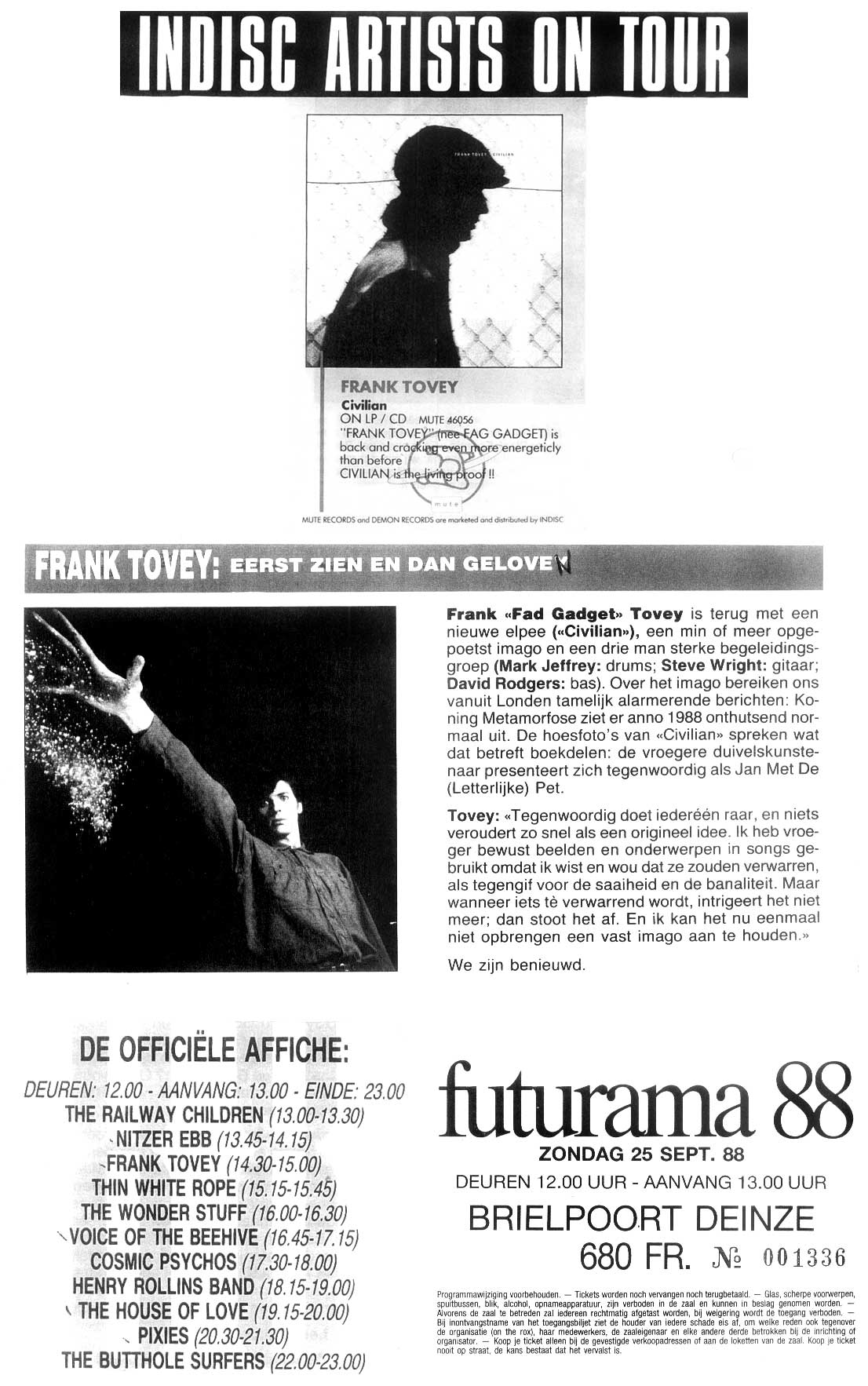 1988 - info sheets for the futurama festival (dutch)